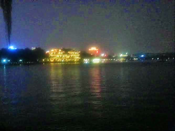 Xi Hu at night- on one side the city lights up, and on the other you can see mountains and traditional temples